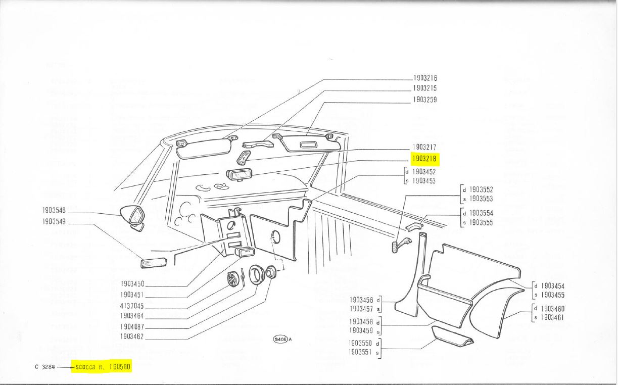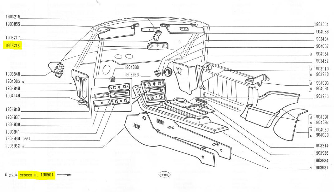 The interior rear view mirror has the same part number in the Body parts catalog bout on Spider 2000 (S1 & S2) & 2400, the original partnumber is: 1903218. Also the external mirror has the same partnumber 1903548. BR