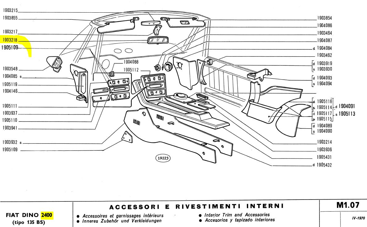The interior rear view mirror has the same part number in the Body parts catalog bout on Spider 2000 (S1 & S2) & 2400, the original partnumber is: 1903218. Also the external mirror has the same partnumber 1903548. BR