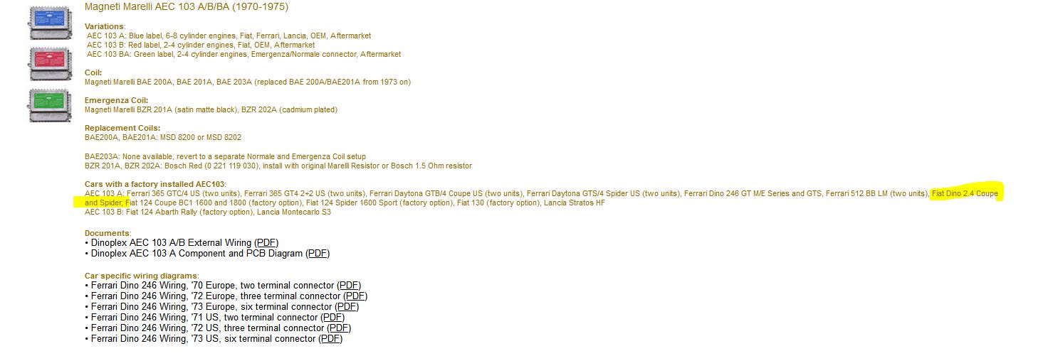ich suche für einen späten 2.4 Spider eine Dinoplex, nur das Gehäuse. Weiß jemand, ob es eine AEC 101 oder AEC 103 ist?