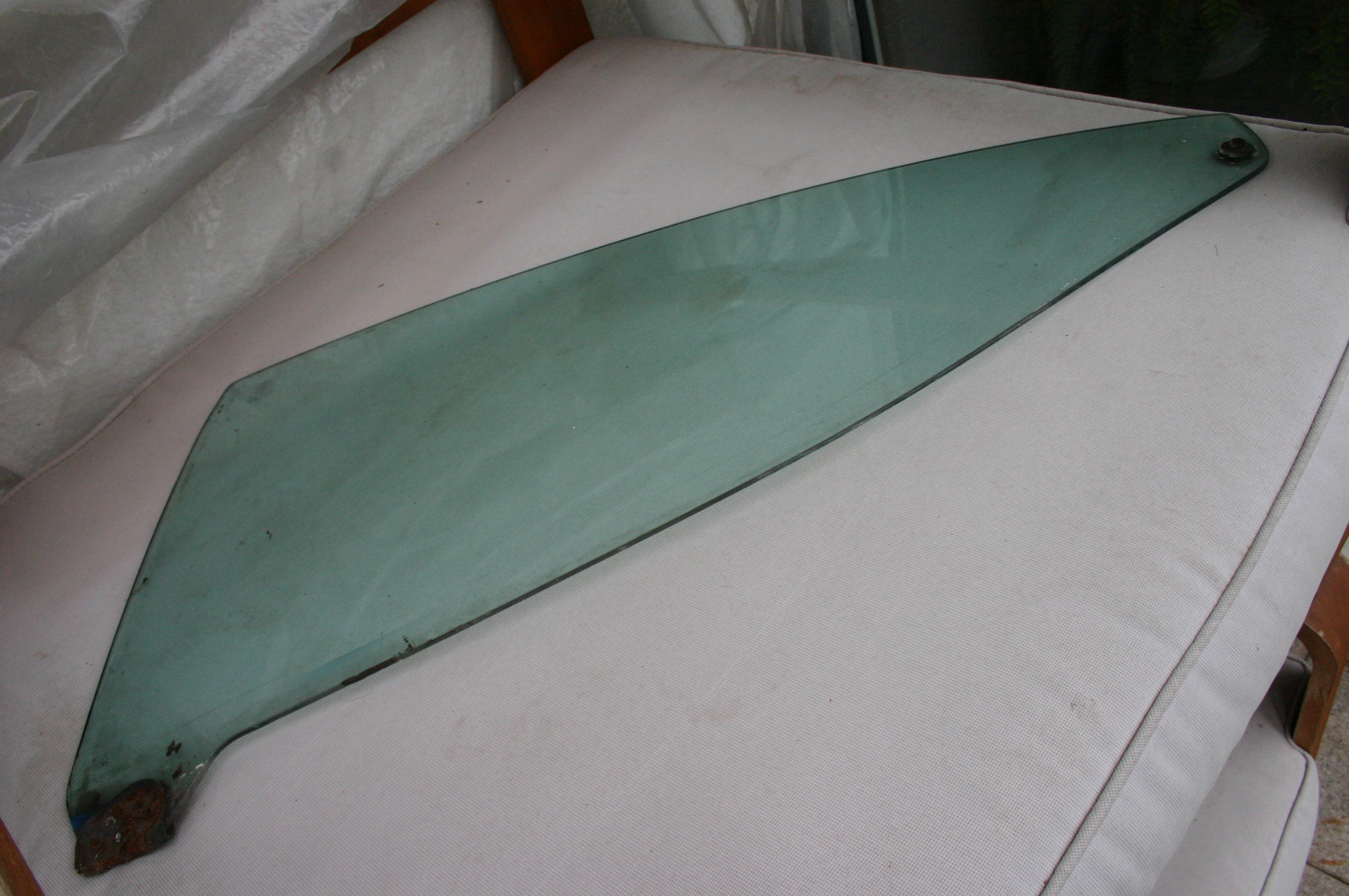 Vor ein paar Jahren hatte mir ein Depp ein Dreiecksfenster eingeschlagen. Dann begann eine frustrierende Suche nach Ersatz. Ich mußte dann feststellen, daß nur die Frontscheibe als Neuteil erhältlich ist. Die Seitenscheiben und die rückwärtige Scheibe sind hingegen nur gebraucht zu finden. Mit dieser Erkenntnis habe ich dann über die Zeit einen Satz aller Scheiben für mein Coupé zusammengesammelt. Nun habe ich sogar diese beiden Scheiben überzählig, und mein Keller soll leerer werden.