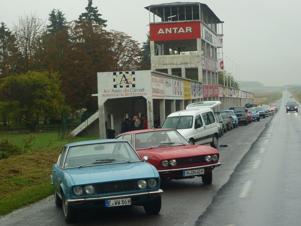 Anfang Oktober haben Wolfgang mit Familie und ich uns aufgemacht, unseren 2 Liter Coupés an dem Ort Auslauf zu gönnen, für den die Motoren (die Alu-Magnesium-Legierung, nicht die Grauguss-easy to handle-Variante) ursprünglich erdacht und gemacht worden waren: wir wollten auf die Rennstrecke, aber nicht auf irgend eine. Reims-Gueux sollte es sein, denn dort gewann Ferrari 1958 zum ersten Mal mit diesem Motor ein Formel 1 Rennen (im Tipo 246 F1 mit Mike Hawthorne am Steuer).