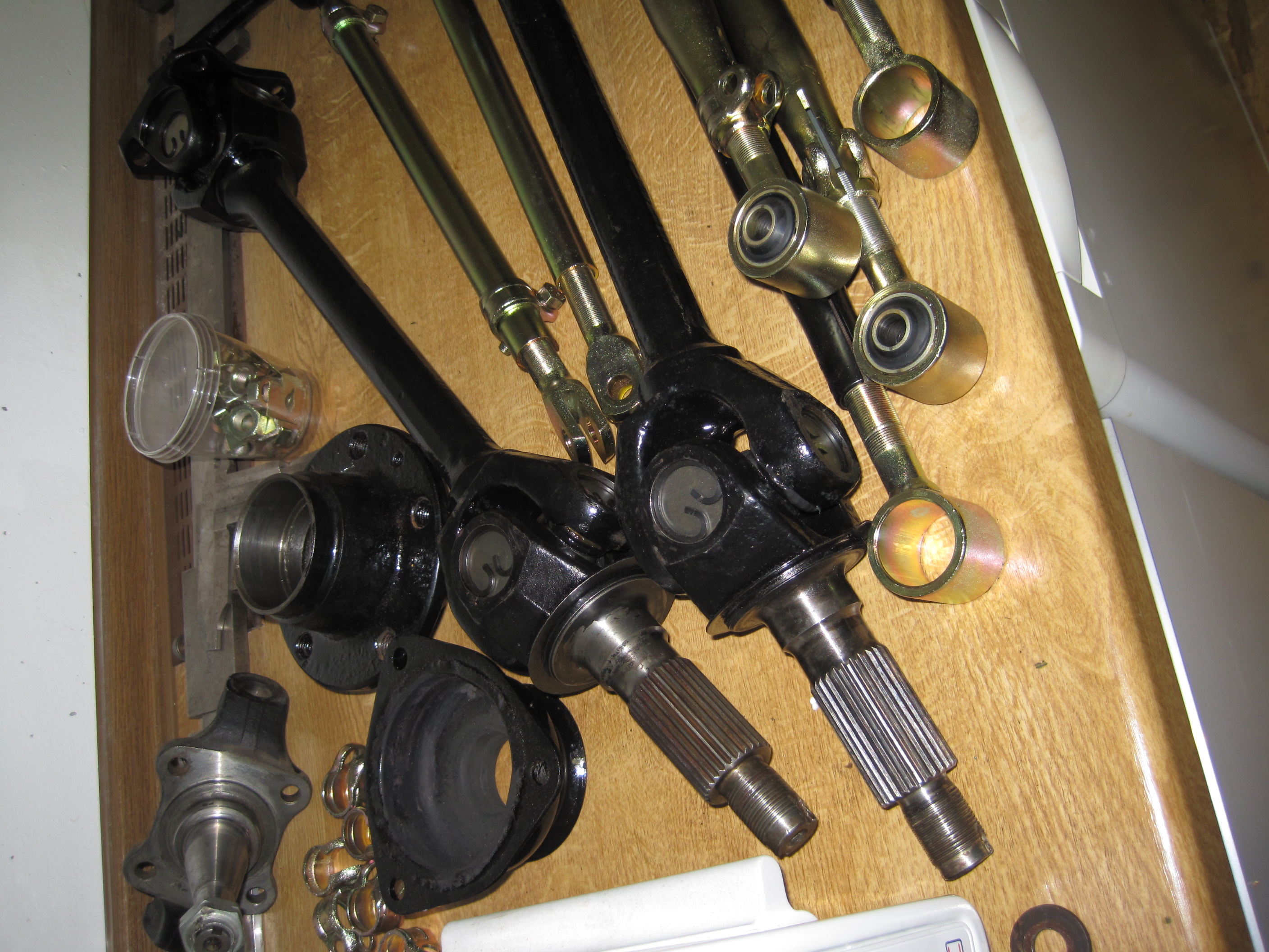 Gestrahlt und pulverbeschichtet, lackiert oder verzinkt, neue Buchsen, neue Kreuzgelenke, neue Radlager und neue Bremsscheiben.