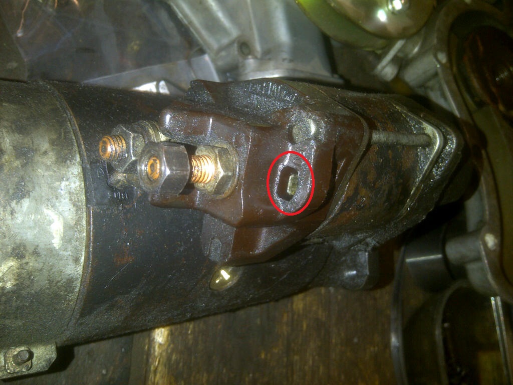 ich habe ein Foto des Dino Anlassers beigefügt, der Anschluss ist rot umkreist.