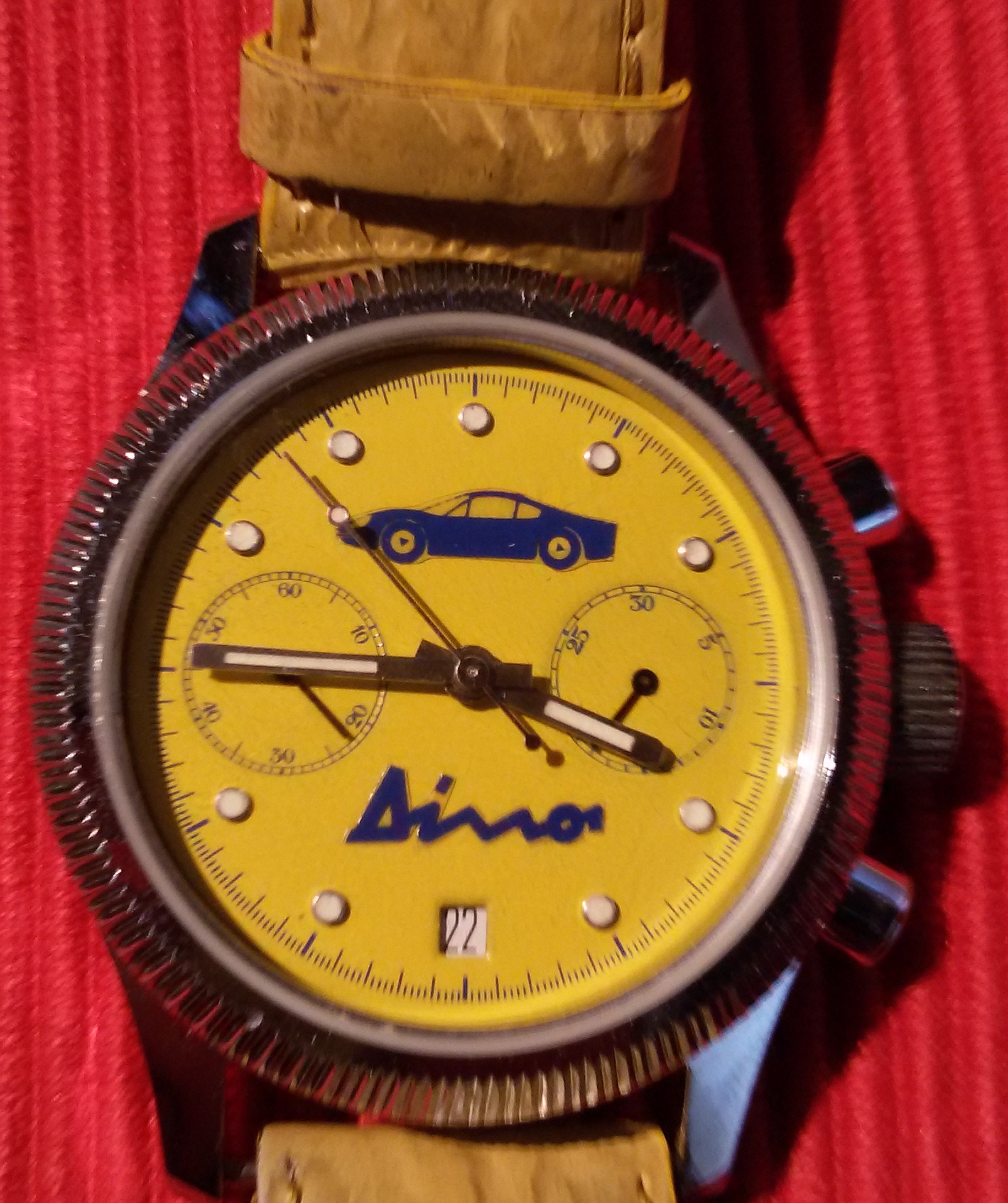 Von der oberen Uhr die Markus Haub gezeigt hat, die mit dem 246 auf dem Ziffernblatt, scheint es eine kleine Serie zu geben. Davon besitze ich das Modell "Fiat Dino Spider", die Logos von Pininfarina und Dino sind gleich, nur statt des 246 wird dort das Fiat Logo gezeigt. Bei meiner Uhr ist das Armband "sportlicher" gelocht.