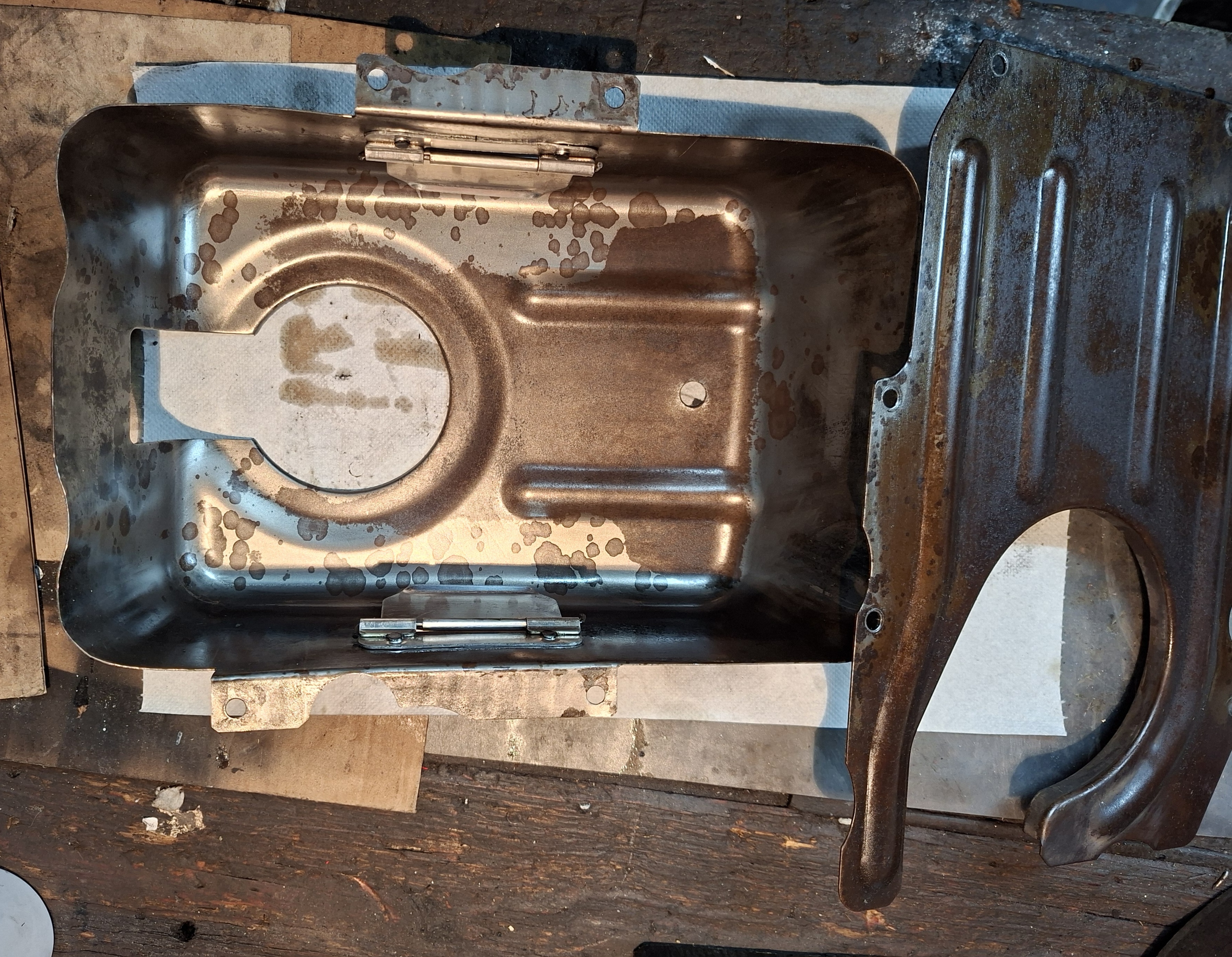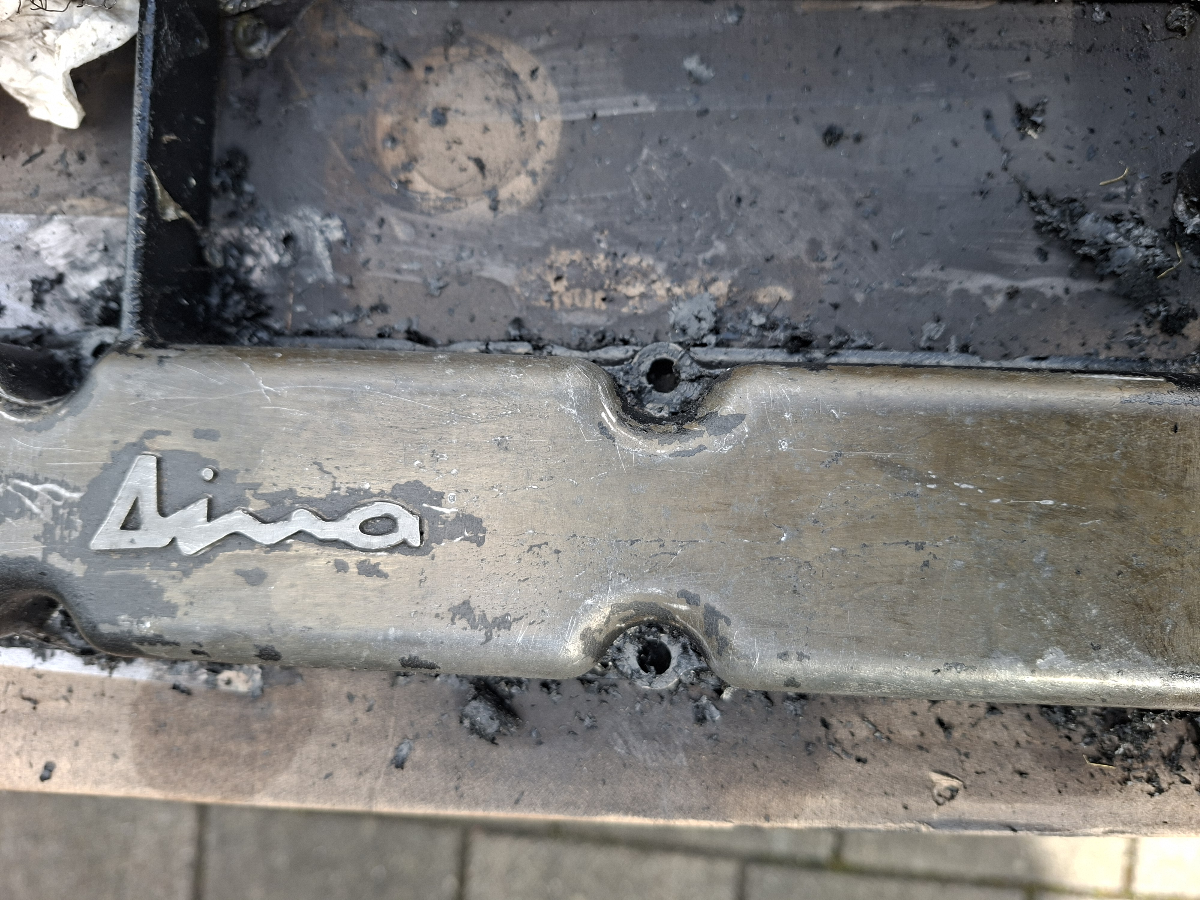 Dann ging es an die Ventildeckel. Während die beim 2,4 mit Schrumpflack lackiert waren und noch ganz gut aussahen, waren die beim 2,0 schwarz lackiert, hatten aber schon Kratzer, Lackabplatzungen etc. Die 2,4 Deckel hab ich gereinigt und bin nochmal mit Schrumpflack drüber gegangen. Das Ergebnis hat mir so gut gefallen, dass ich die 2,0 Deckel auch so gemacht habe. Beim Entlacken kam da nochmal klar raus, wie die Magnesiumdeckel ab Werk waren, nämlich mit olivbraungrauer Passivierung.