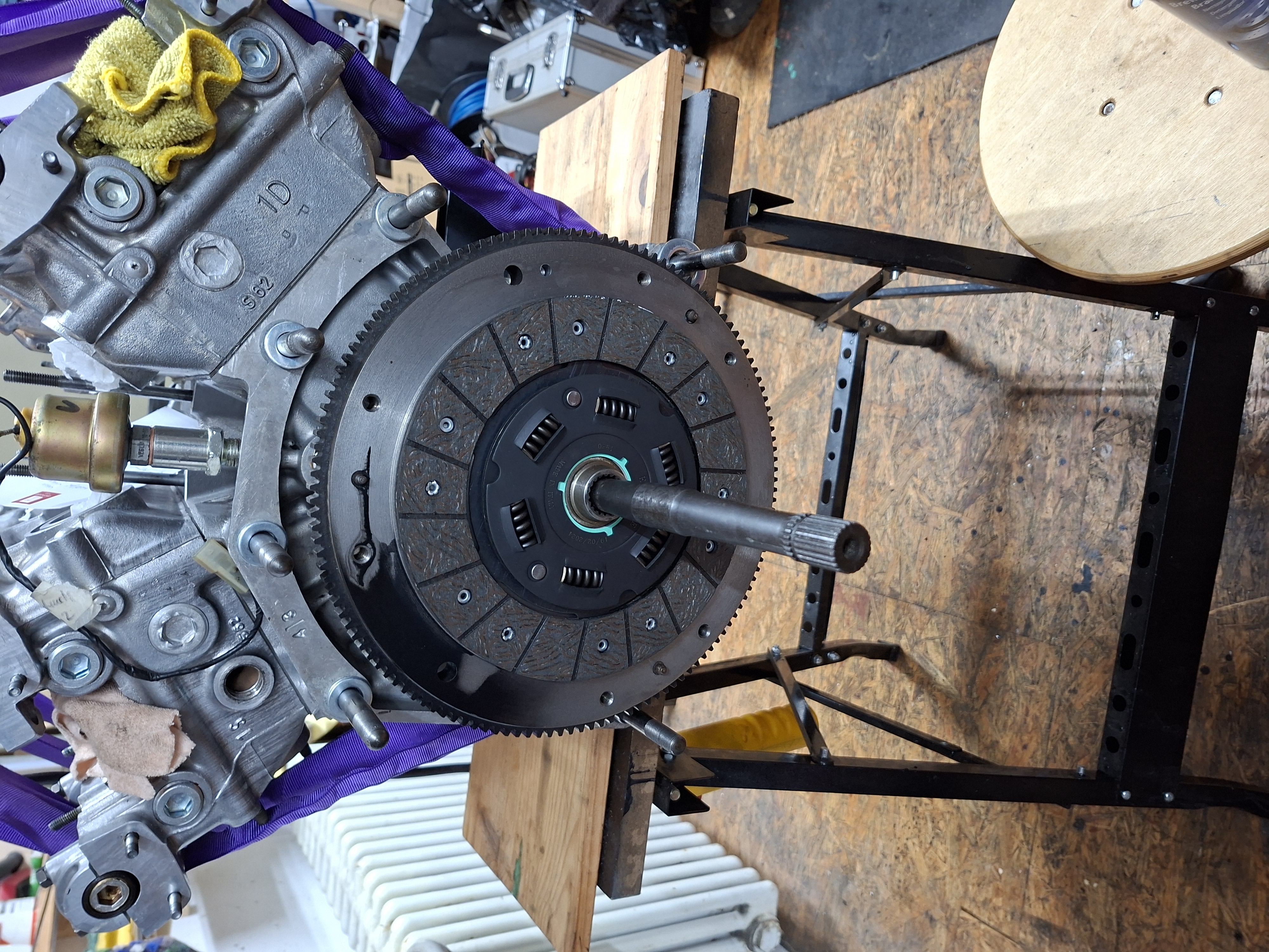 Nachdem ich endlich den abgebrochene Stehbolzen an der Rückseite des 2.0 Motors raus hatte, konnte ich endlich Motordeckel mit Simmerring, Schwungscheibe und Kupplung montieren.