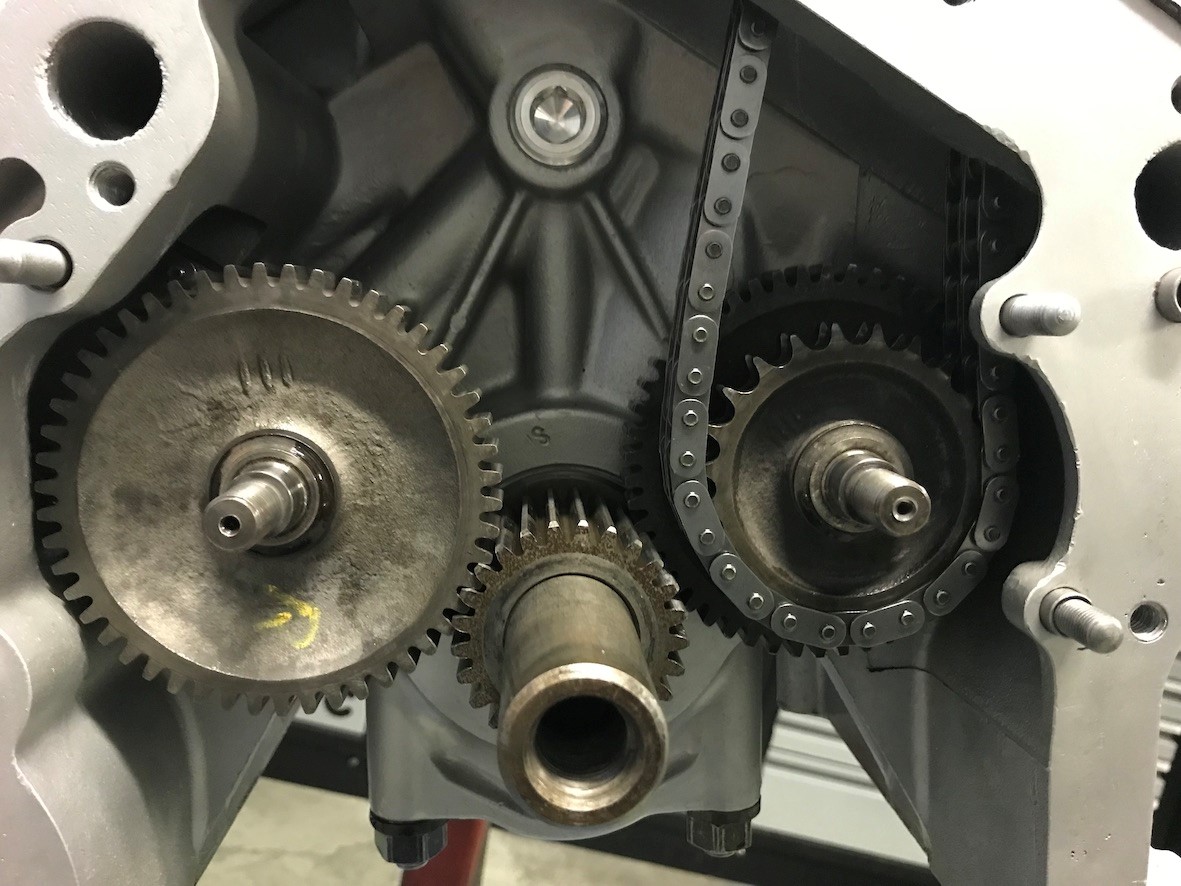 Nockenwellenantrieb 1 Lager eingebracht Motorblock.jpg