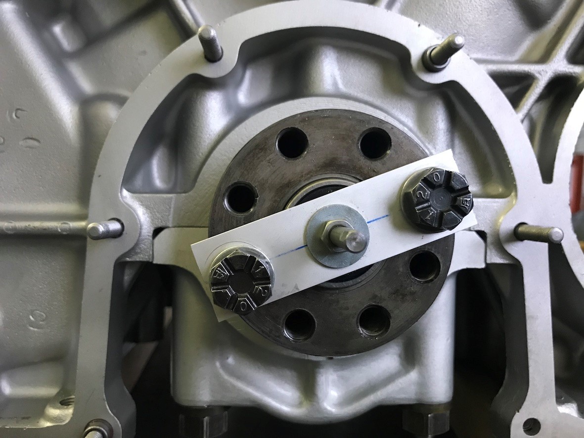 Am hinteren Kurbelwellenende wird eine Aufnahme befestigt, die über das Führungslager der Kupplungswelle zentriert wird.