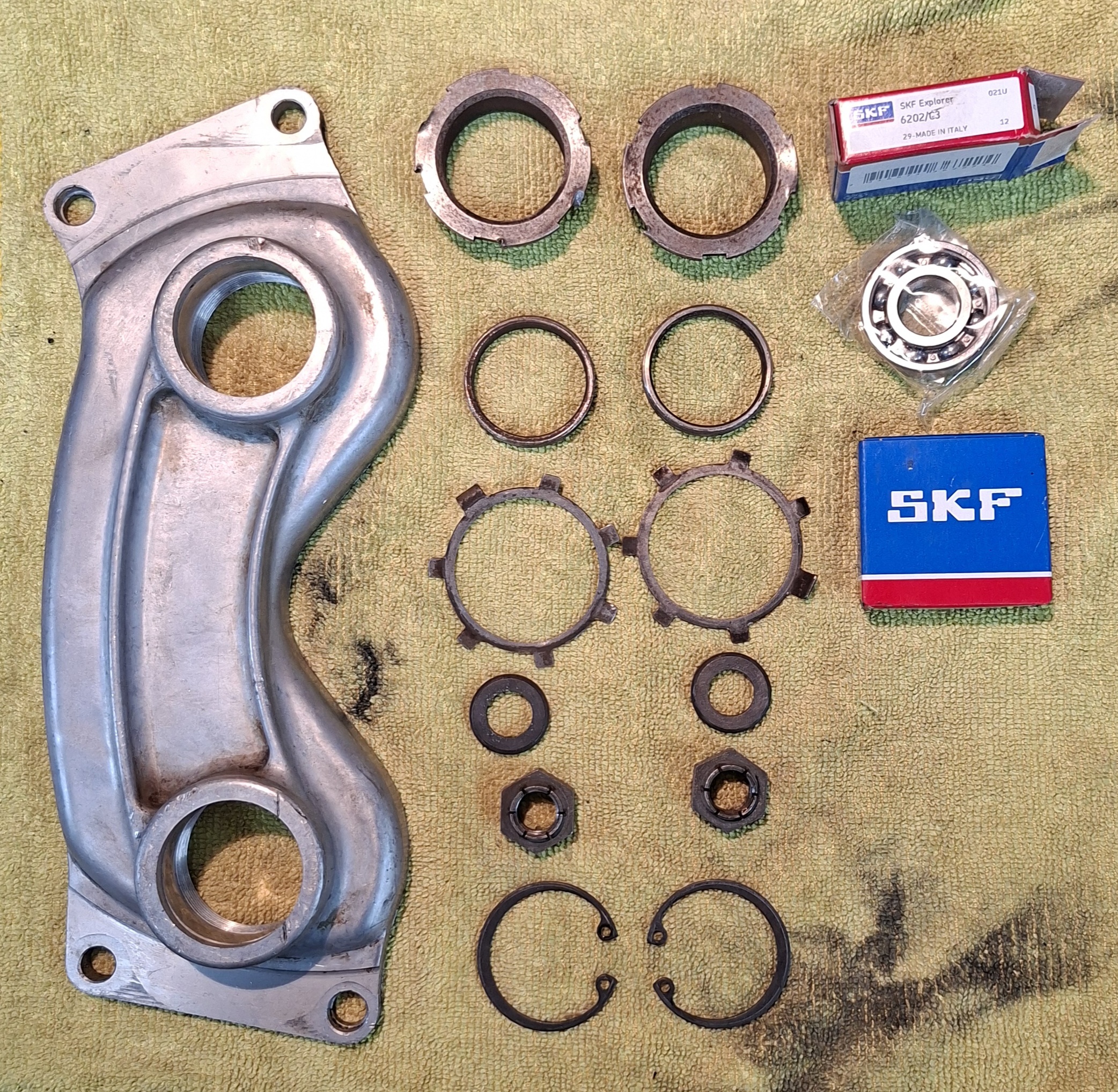 Beim 2.0 Motor war das anders, da hatten die Lager bereits einigen Verschleiss und werden gewechselt. Hier war noch die frühe Version mit den Nutmuttern verbaut, was einige Schwierigkeiten beim Zerlegen bereitete. Ich überlege noch, ob ich dies auf sie spätere Version umbaue. Anbei auch ein Bild der zerlegten Antriebsbrücke.