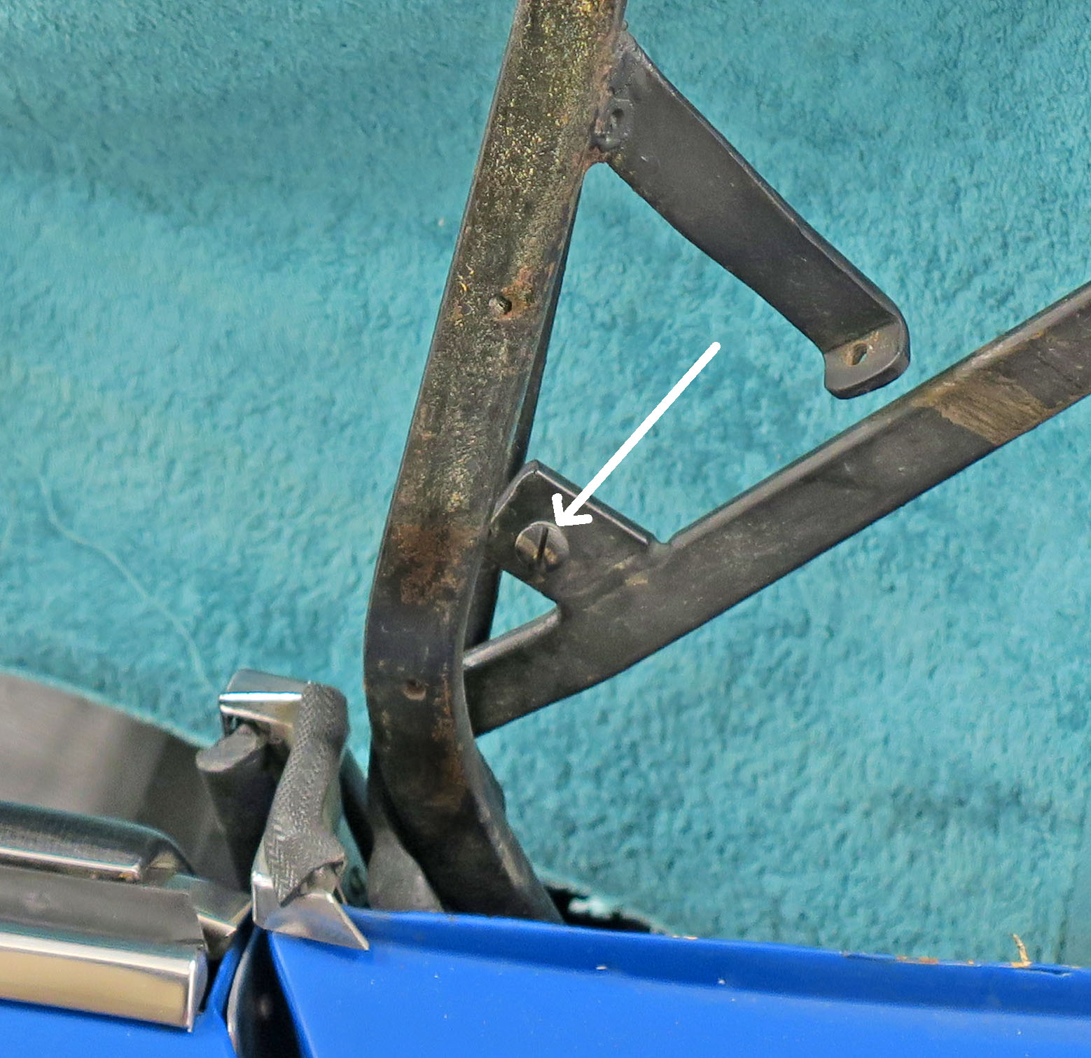 Im Gestänge gibt es rechts und links eine hervorstehende Schraube (eigentlich Schraubenkopf) - siehe Bild.