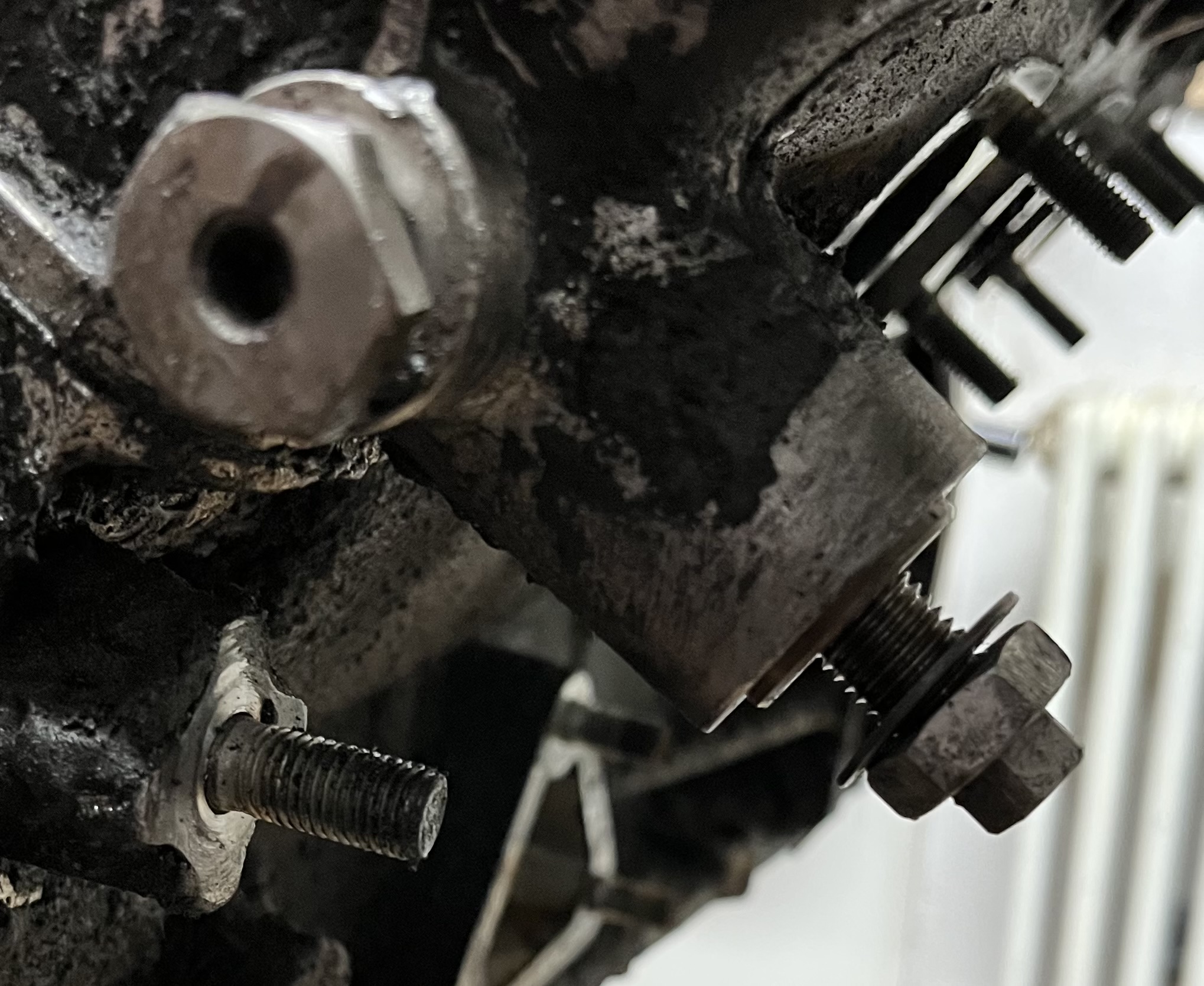 Nächster Schritt: Kontrolle von Ventilspiel, Steuerzeiten und Kettenspannung. Dazu müssen die Ventildeckel ab, das ist noch bei beiden Motoren gleich - jede Menge Muttern und Scheiben und bloß keine in den Motor fallen lassen…