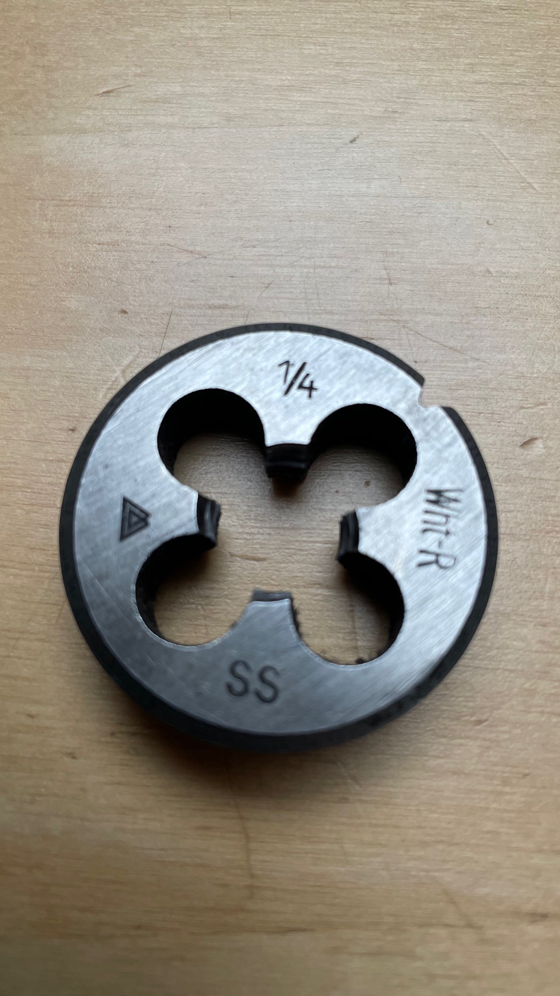 folgende Beschriftungen finden sich auf dem Gewindeschneider: 1/4 SS Wht-R (siehe Bild)