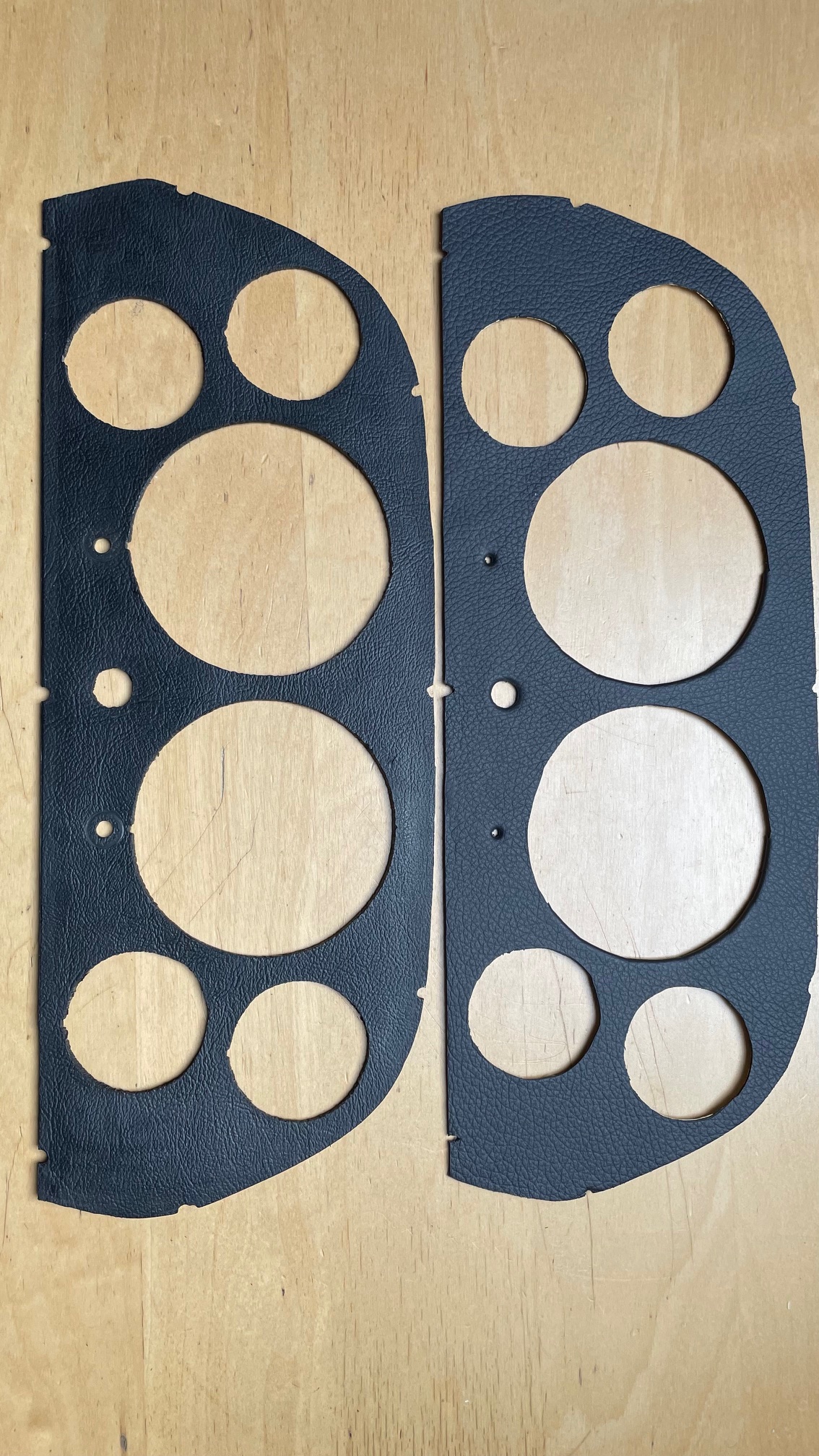 Alternativ könnte man ja eine dünne Aluplatte mit Kunstleder beziehen und die Löcher auf das Armaturenbrett beziehen - aber wozu der Aufwand - dann hätten die Instrumente ja die falsche Position, z.B. in Bezug auf das Lenkrad.
