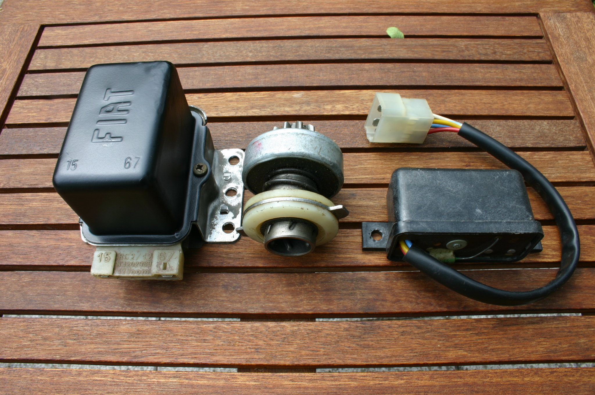 • Gebrauchter Spannungsregler Fiat Nummer 4202969, Deckel sandgestrahlt, verzinkt, schwarz lackiert, getestet, funktioniert; paßt für Dino 2400 und 2000; dieser hat den seltenen Deckel mit dem FIAT Schriftzug, der ursprünglich bei den Dino 2000 Modellen verbaut war