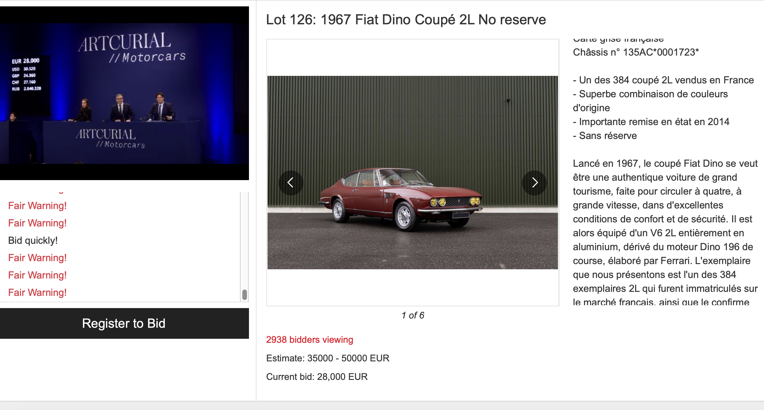 auf der Automesse Rétromobile in Paris werden am 2. bis 4. Februar 2024 auch zwei Dinos versteigert. Losnummer 118 ist ein 246er und Los 126 ein 2.0 Dino Coupé. Der 246er braucht laut Angabe eine grössere Revision da er lange nicht gelaufen ist.