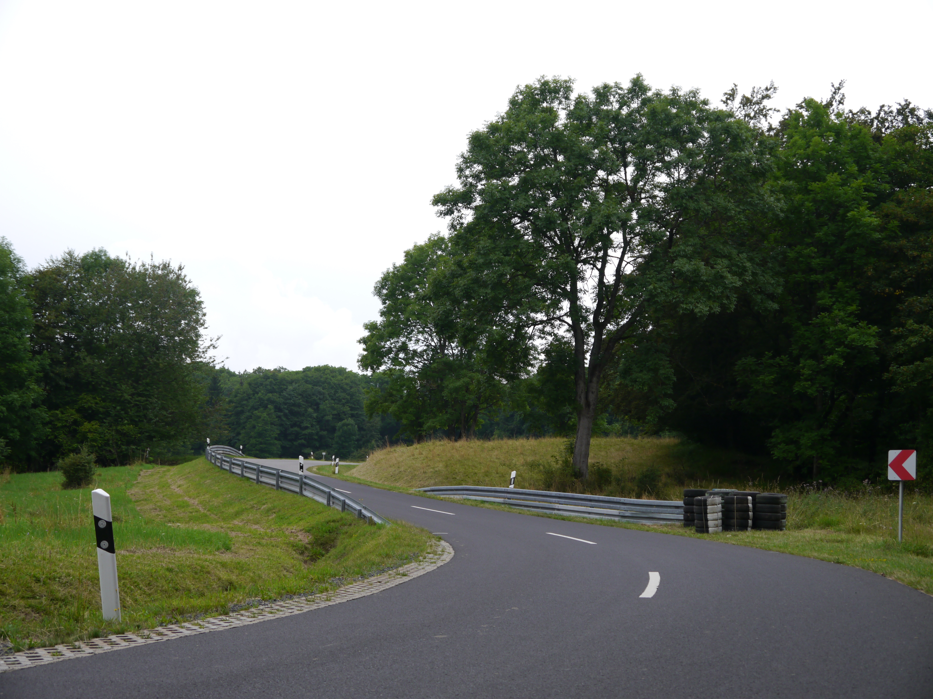 Natürlich befahren wir auch die Strecke des berühmten "Hauenstein"-Bergrennens in der Rhön, die Reifenstapel sind schon aufgebaut...