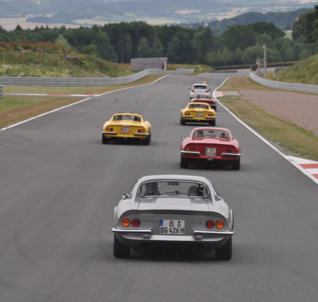 Es war wie immer ein Erlebnis und wir hatten wieder sehr viel Glück mit dem Wetter! Der Dino GT4 hat sich mittlerweile auf jeden Fall etabliert, es haben 15 GT4s an der Ausfahrt teilgenommen. Mein Versuch, mit einem Marone Metallizato GT4 mal eine recht seltene Farbe beizusteuern, ging jedenfalls nicht auf. Es waren gleich drei (!) Stück in der Farbe am Start.