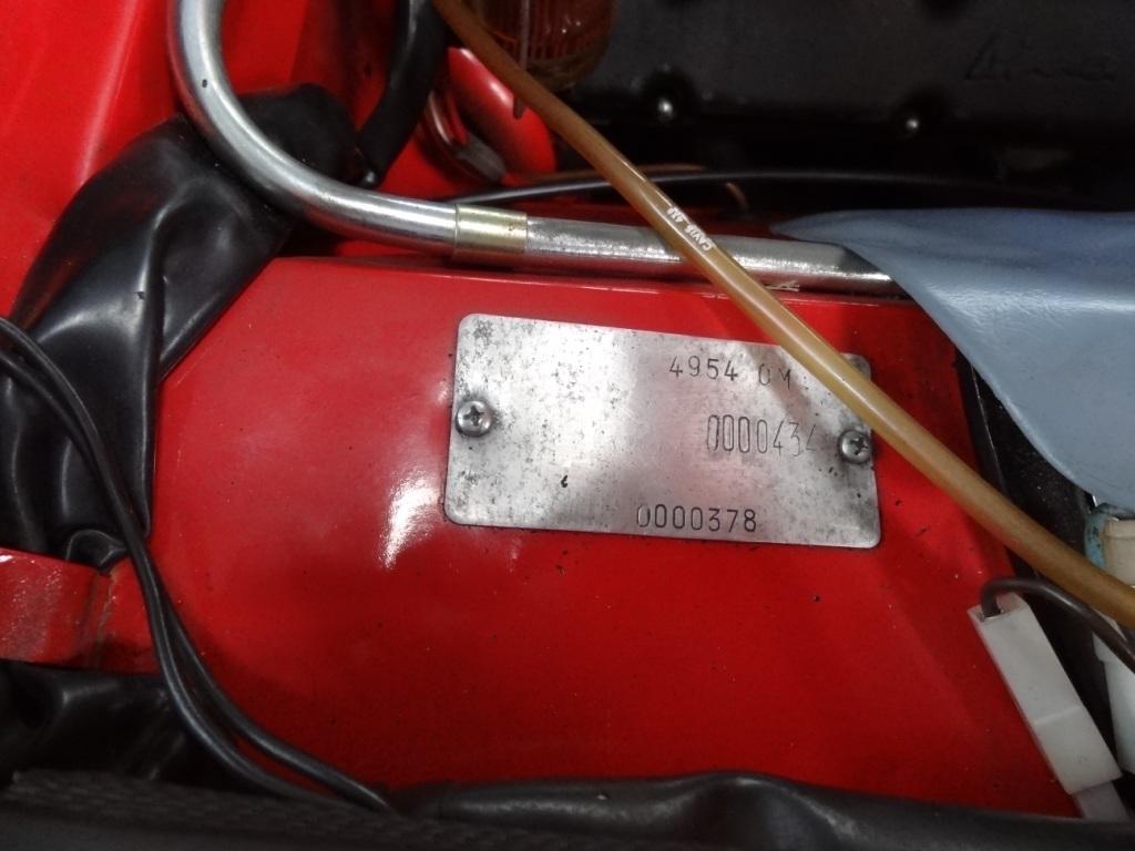 Das Auto sieht auf den Bildern ganz ordentlich aus, sogar mit Hardtop. Die 434 habe ich noch nicht auf meiner Liste, somit haben wir einen neuen Dino gefunden. Sag mir mal noch das Land aus dem er kommt, nur für die Statistik. Die andere Nummer 378 ist die s.g. Vet.Nr., eine Ersatzteilnummer. Die liegt immer um circa 25 bis 30 Nummern neben der Fahrgestellnummer, passt also. Hat das Auto nur das Hartop, oder gehört noch das Verdeck dazu ? Wenn das fehlt, das Gestänge gibt es nicht für Geld und gute Worte.