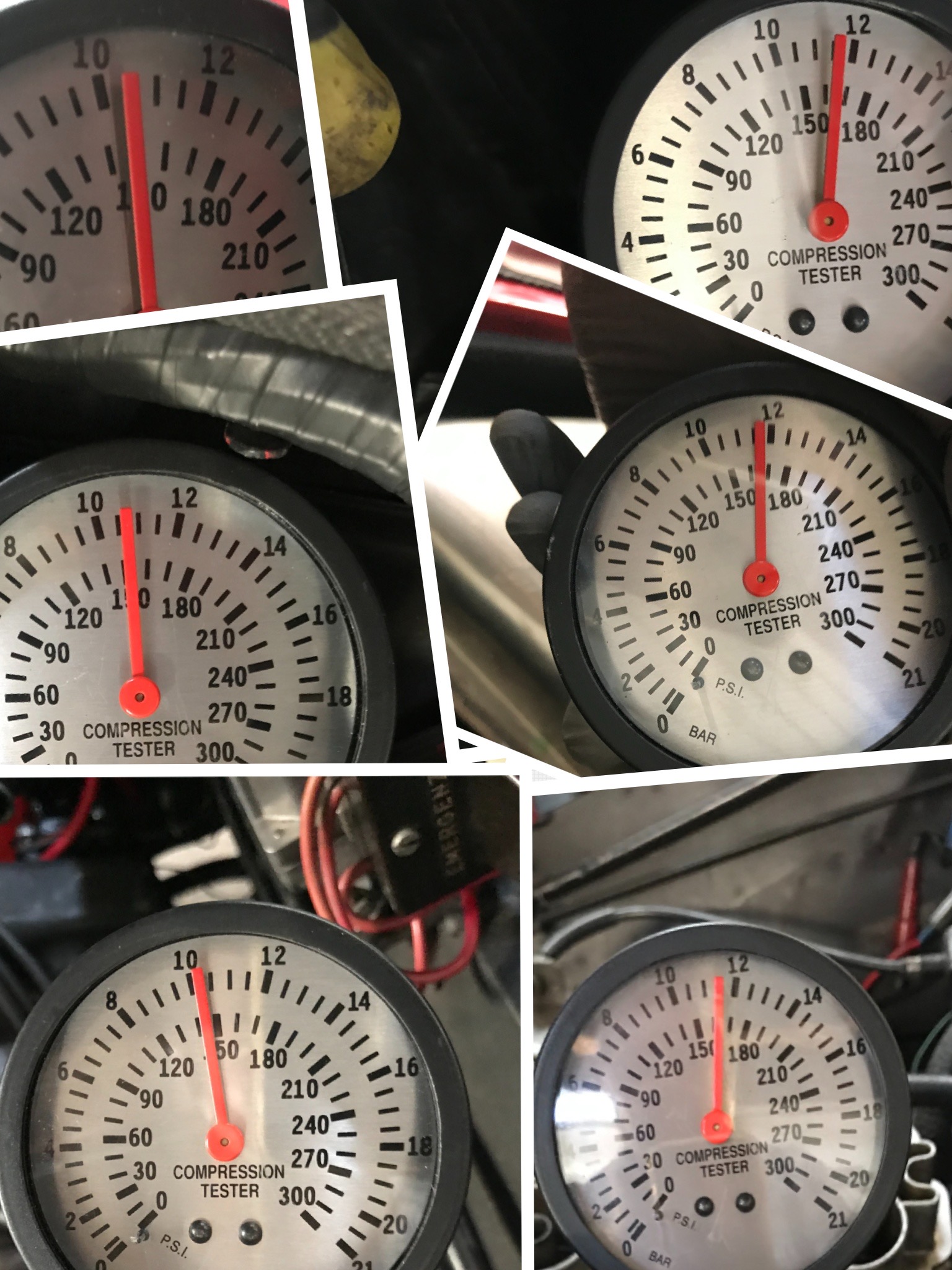 Warmer Motor - alle Kerzen raus - Gaspedal durchgetreten (somit Drosselklappen offen) 10 - 11 kg /cm2.