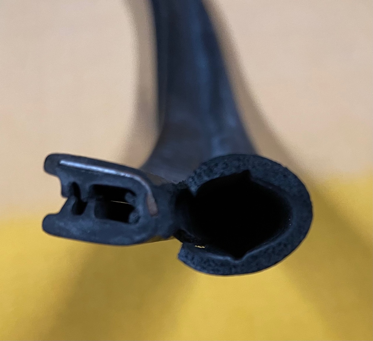 Die obere Dichtung sieht wie die Leiste im Kofferraum aus, die gegen das weiche Gummiband im Deckel drückt.