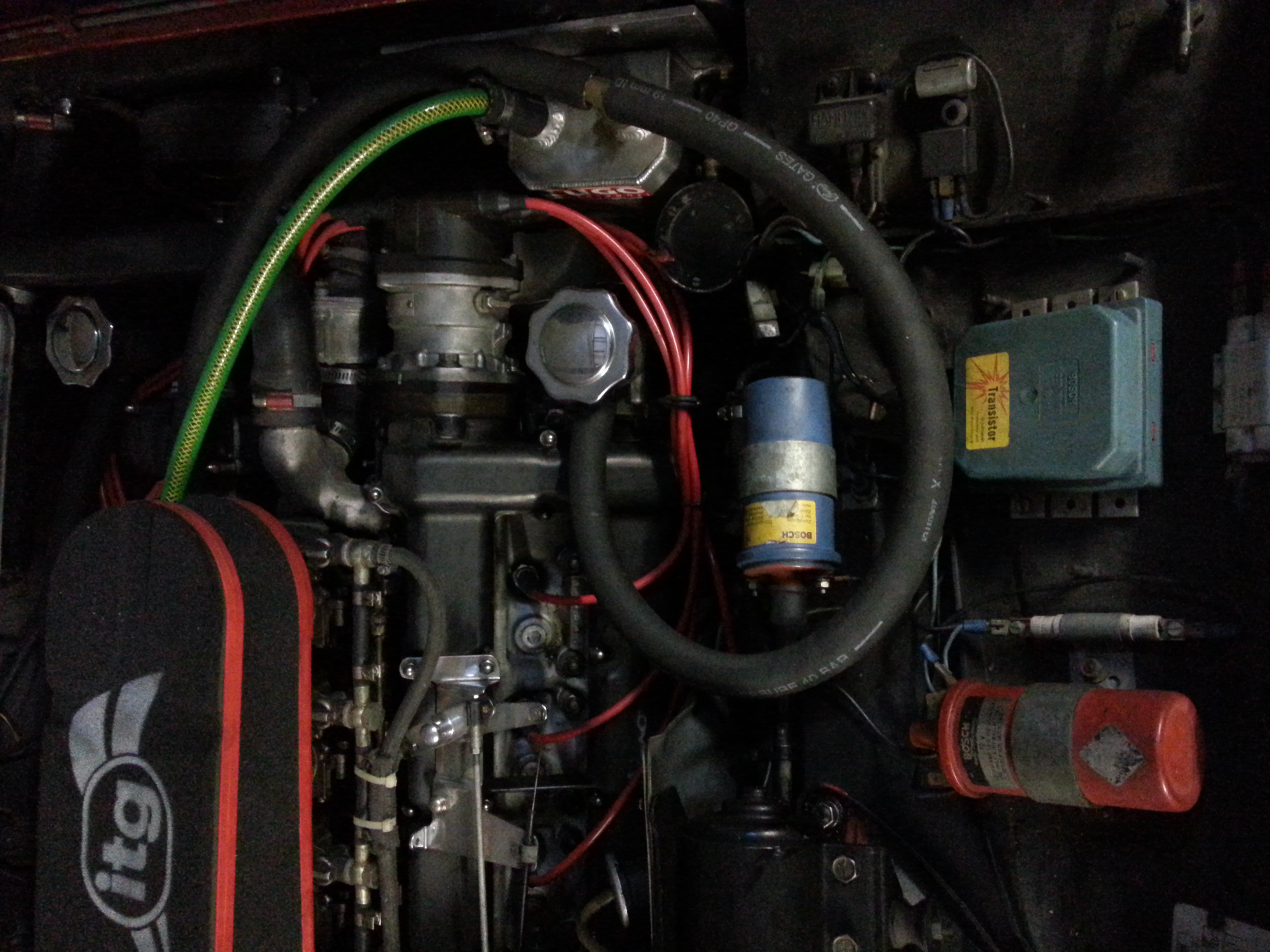 Übrigens: Beim Kauf war so eine Superformance Vergaserhaube aus Schaumstoff eingebaut, ich habe dann noch eine Öldampfrückführung mit einem grünen Gartenschlauch hinzugefügt. Ich nehme an, diese Anlage bringt ausser einem guten Sound nicht viel. Oder sollte ich der Langlebigkeit wegen wieder den alten Topf raufmechen?
