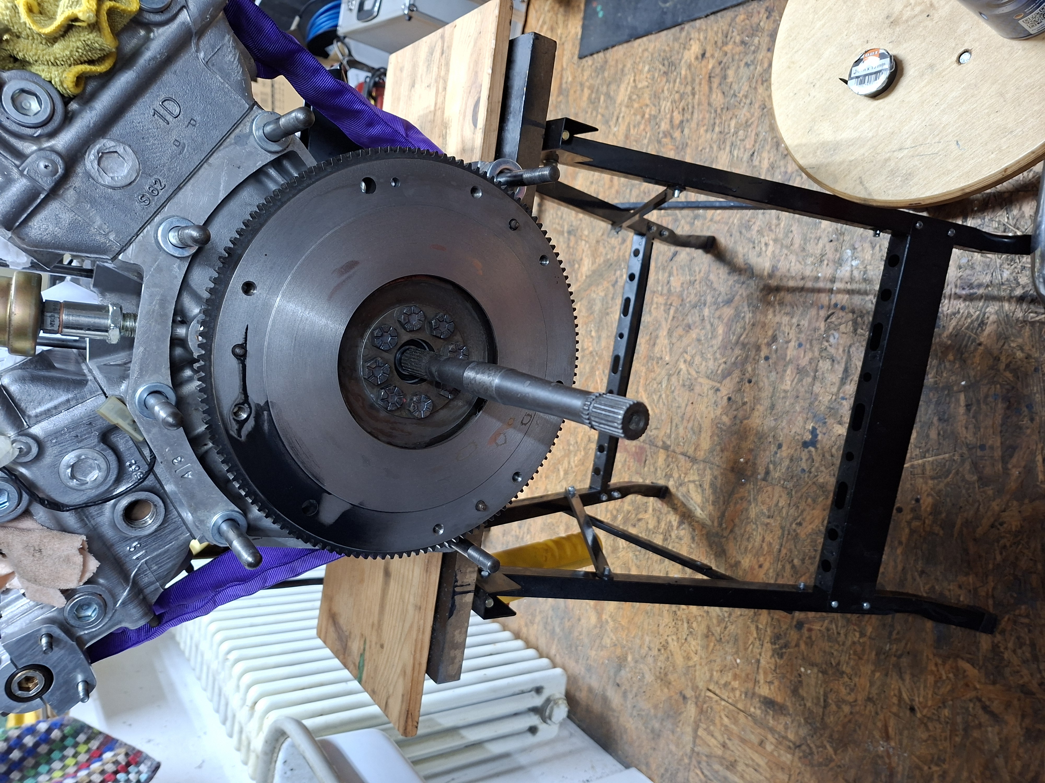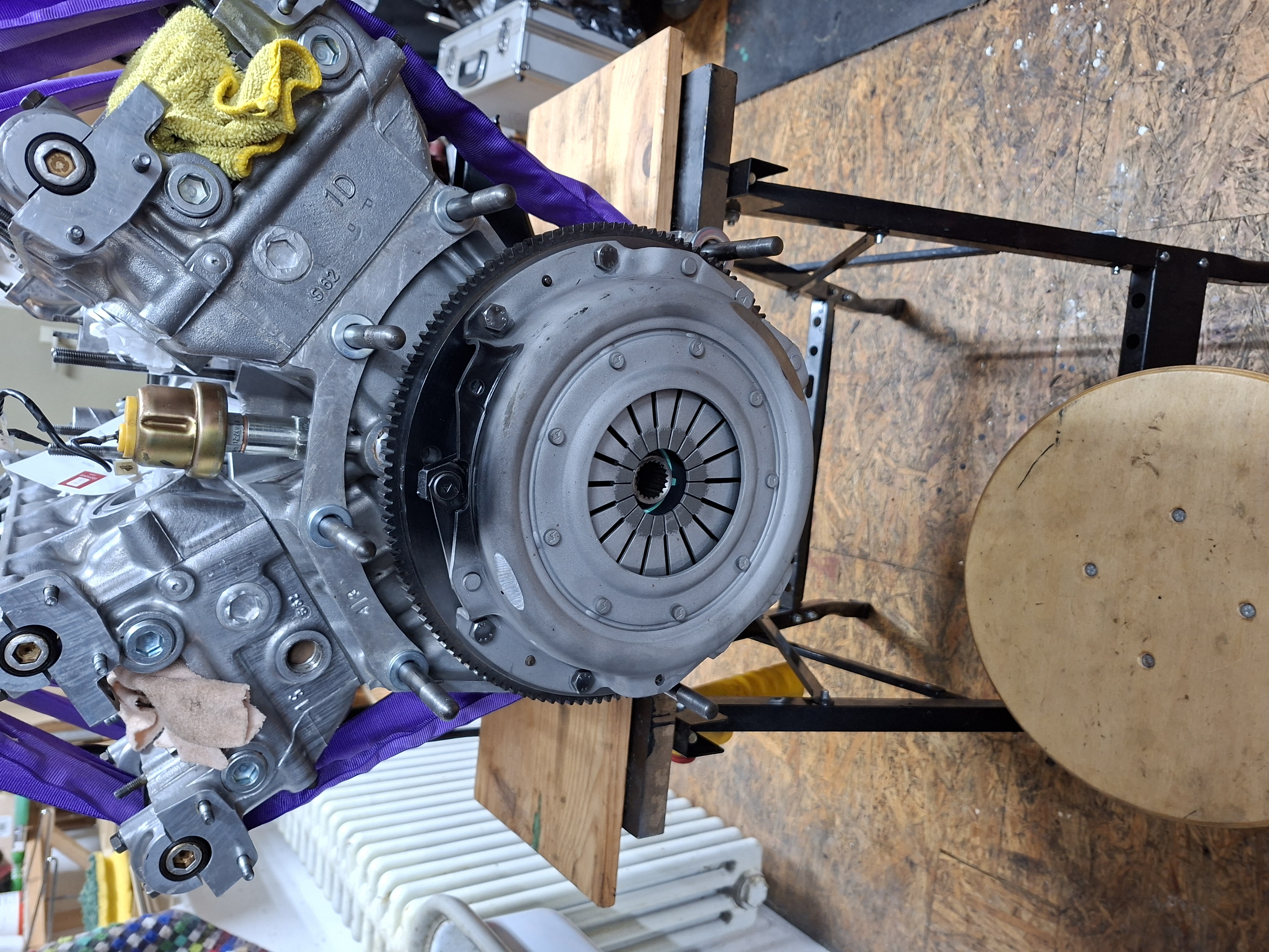 Nachdem ich endlich den abgebrochene Stehbolzen an der Rückseite des 2.0 Motors raus hatte, konnte ich endlich Motordeckel mit Simmerring, Schwungscheibe und Kupplung montieren.