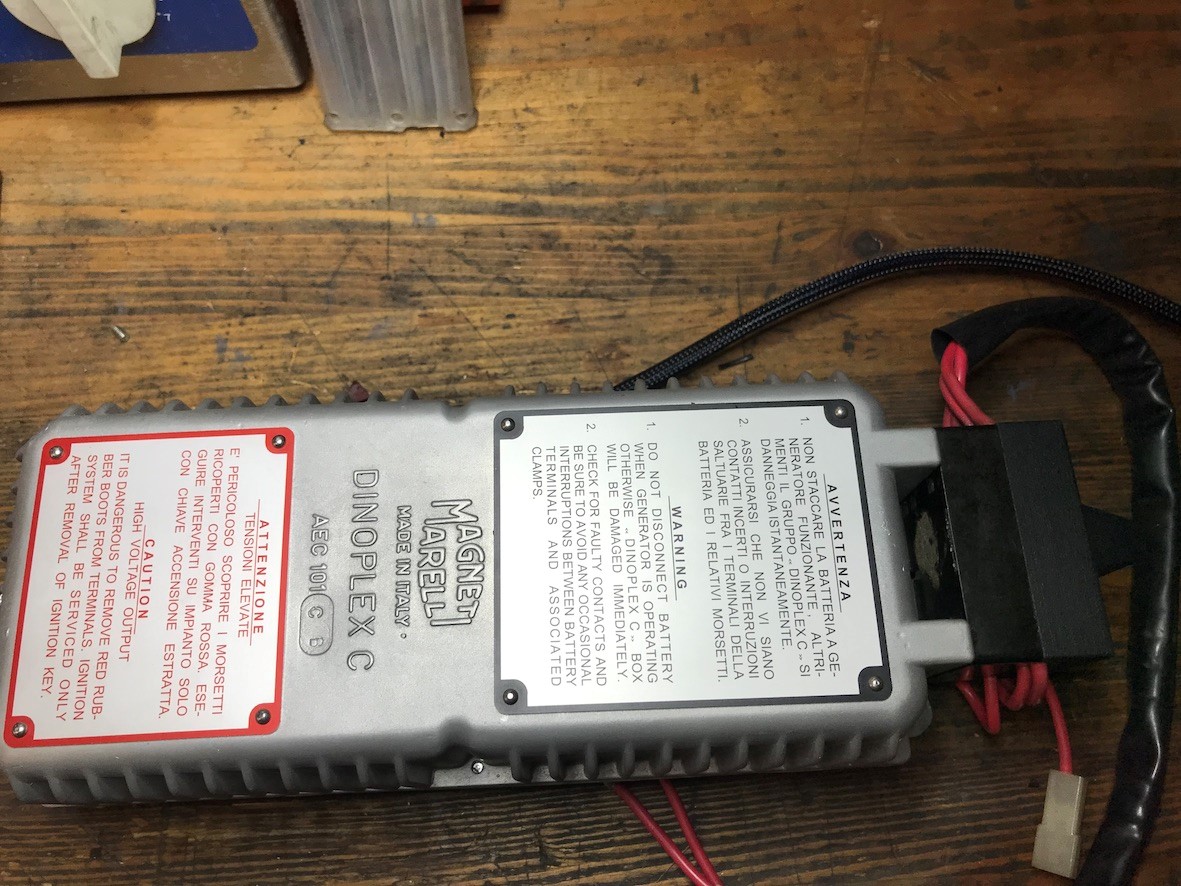 Zunächst die Dinoplex; Gehäuse Perlstrahlen; Typenschilder waren nicht mehr vorhanden, dann moderne Zündung im Gehäuse unterbringen, neue Typenschilder eingenietet und am Ende in das Auto eingebracht.