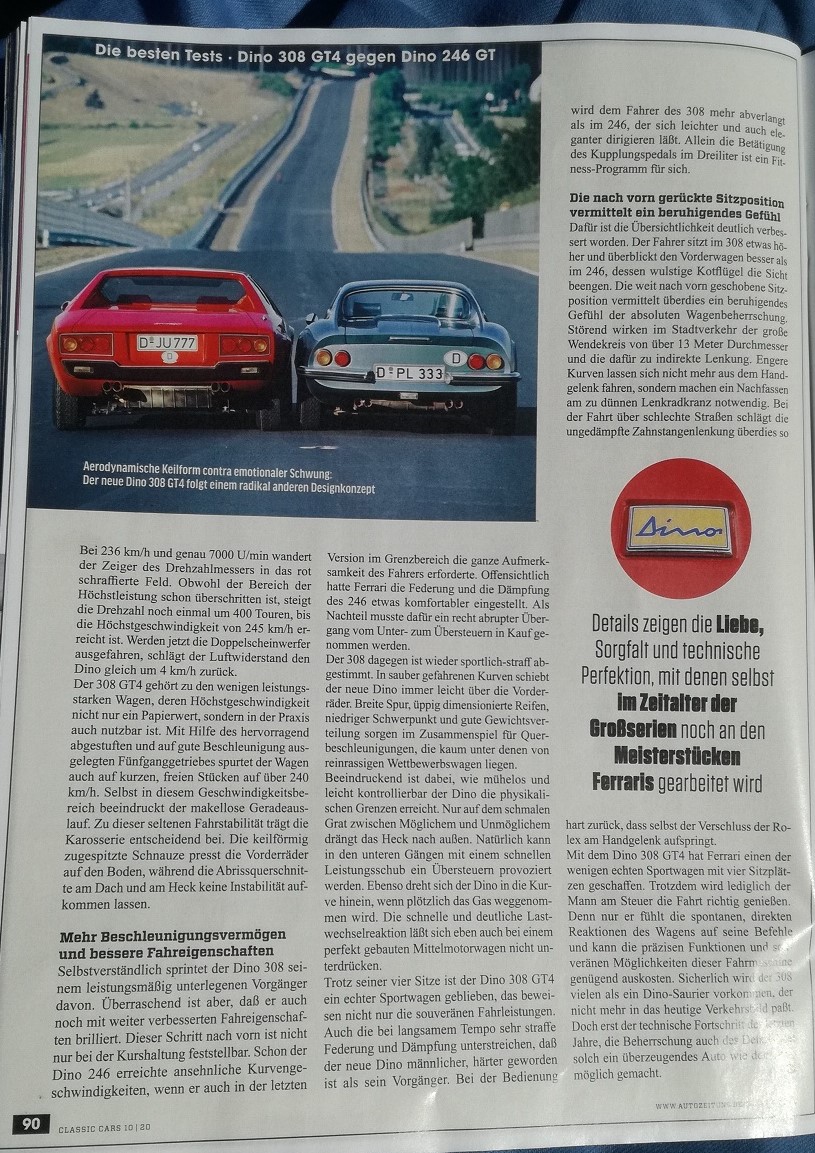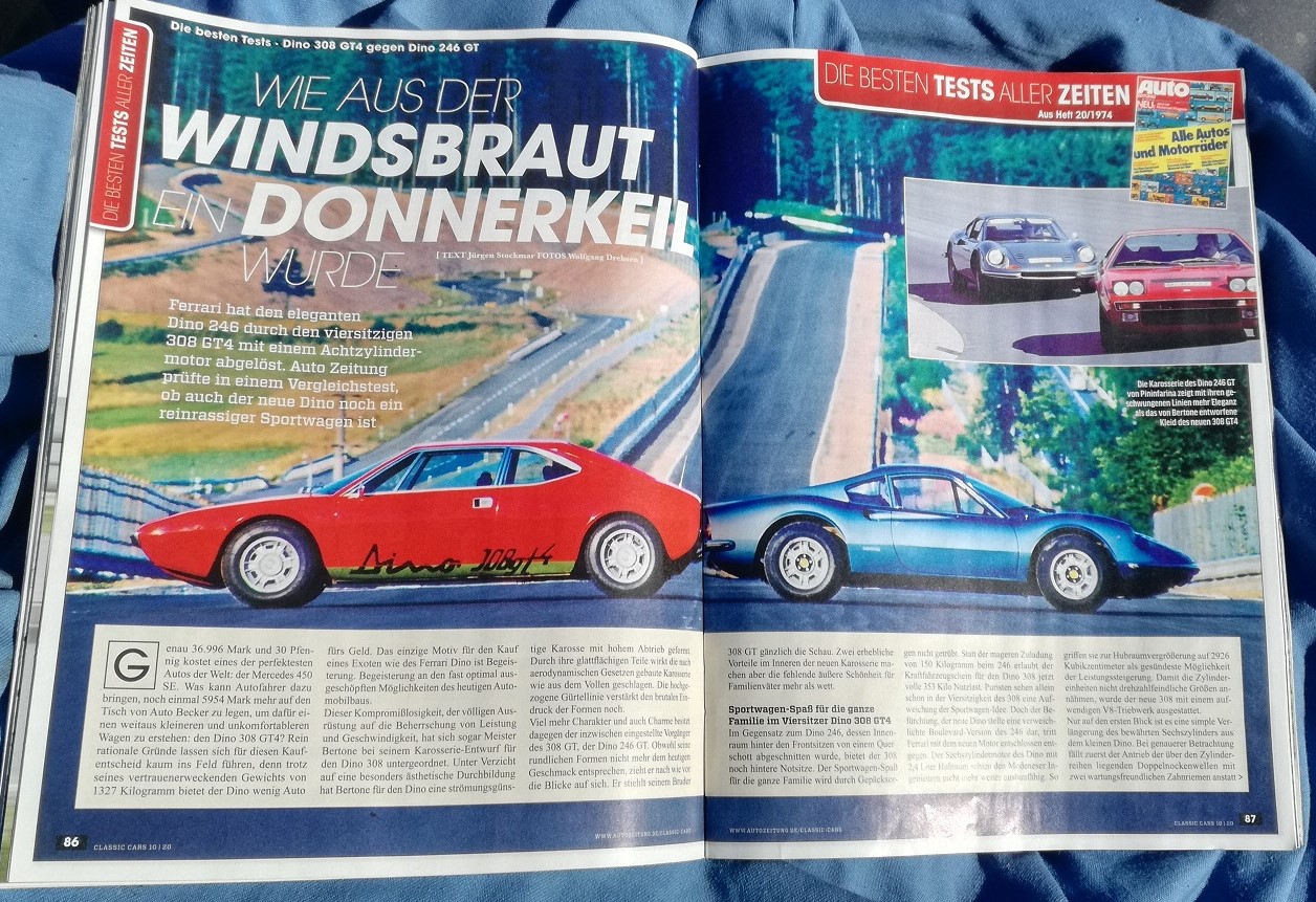 ist ein Abdruck eines alten Vergleichstest Dino 246GT vs. Dino 308GT4 aus der Auto Zeitung drin.