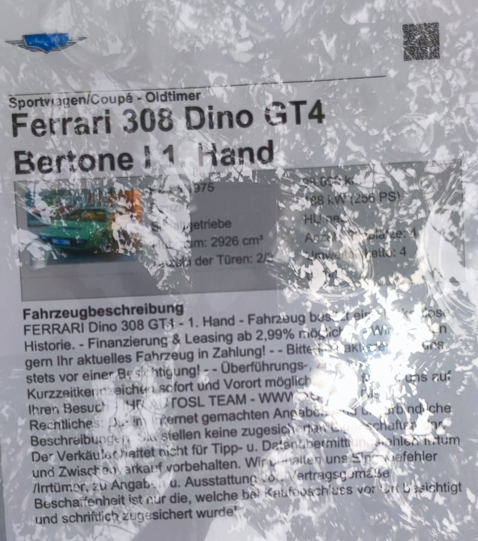 Den 308 GTB hats mal in Verde Chiaro gegeben, das so ausschaut. Den GT4 nur in Pino und Medio so viel ich weiß. Kann gut sein, dass der dann mit Chiaro lackiert wurde.