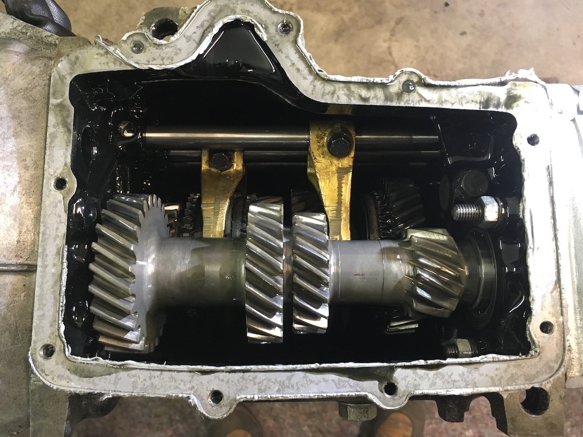 Jetzt ist noch das Getriebe dazu gekommen... man hätte es lassen können; es hat gut geschaltet und nur ganz leichte Geräusche gemacht... aber... wenn schon mal alles draußen war, dann besser jetzt.