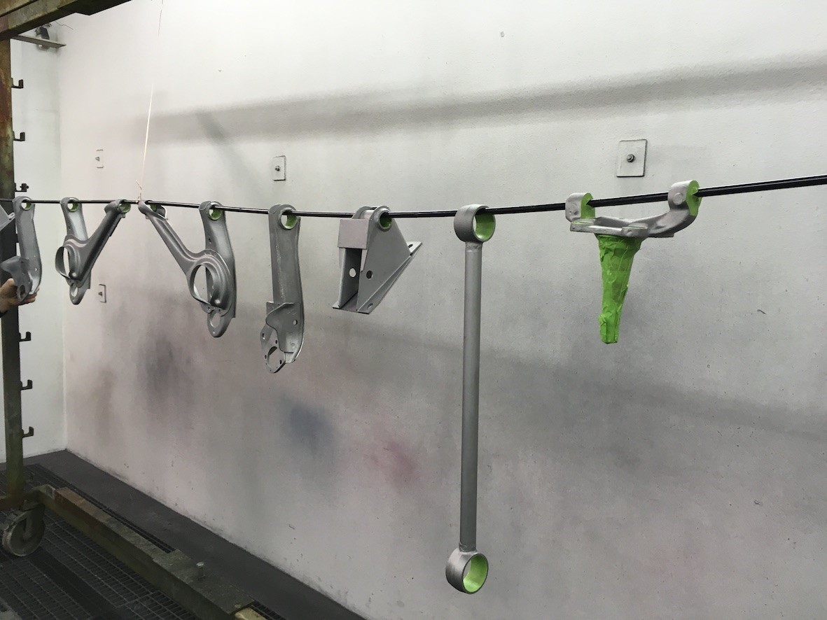 Die Fahrwerkskomponenten nach der Überholung und vor dem Einbau.