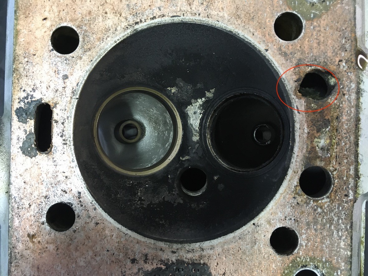 Zylinderkopf_Aussparung für Kühlwasser robben sich schon in Richtung Brennraum... auch nur eine Frage der Zeit, bis das ins Auge geht.