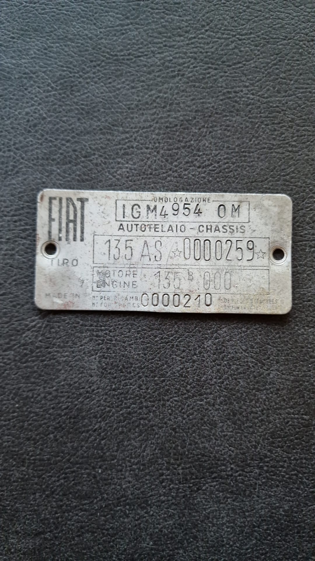 Dann gibt es die Fahrzeugnummer, die definiert die Spezifikation des Autos, sprich welche Teile wurden verbaut und diese gibt die Referenz zu den Änderungen (bis/nach Fahrzeugnummer) im Ersatzteilkatalog an. Diese Nummer wurde vergeben, als Fiat die Karosserie zurück bekam und auf dem Band den Spider zusammenbaute. Im Fall Deiner Plakette ist es die Nummer 210. Diese Nummer hat nur ein einziges Auto. Chassisnummer 259 ist also Fahrzeugnummer 210.